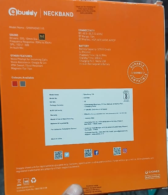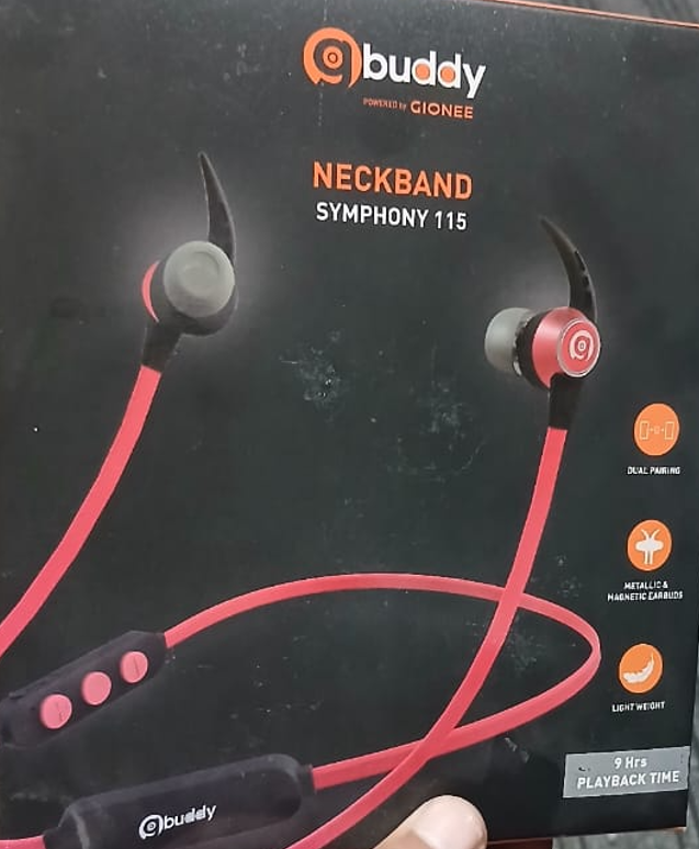Experience crystal-clear sound and all-day comfort with the Gbuddy Symphony 115 Neckband, powered by Gionee. Designed for those on the move, this wireless neckband features advanced Bluetooth 5.0 connectivity, dual pairing for multiple devices, and an impressive 9 hours of playback time on a single charge. The premium metallic magnetic earbuds provide a secure fit and durability, while the IPX4 rating ensures sweat and dust resistance for daily use or workouts.