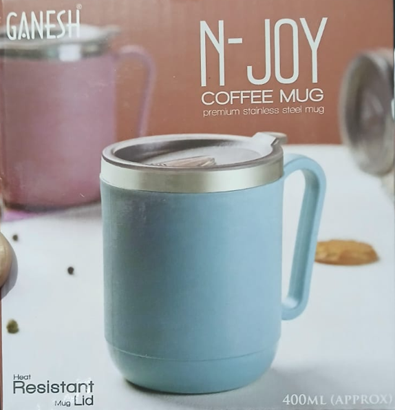 Enjoy your favorite beverages hot or cold with the Ganesh N-Joy Coffee Mug, crafted for durability and convenience. This premium insulated mug boasts a stainless steel inner body and a sturdy double wall construction with a quality food-grade plastic outer wall. Its 400ml capacity is ideal for daily use or travel, and the big comfortable handle provides a secure grip.