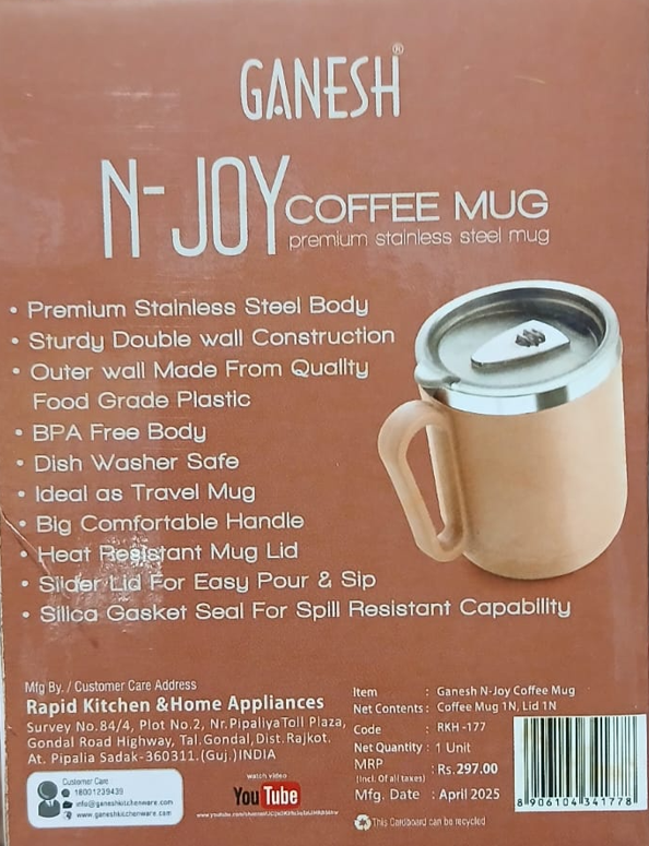 Enjoy every sip with confidence and comfort—Ganesh N-Joy Coffee Mug is your go-to companion for on-the-go refreshment.